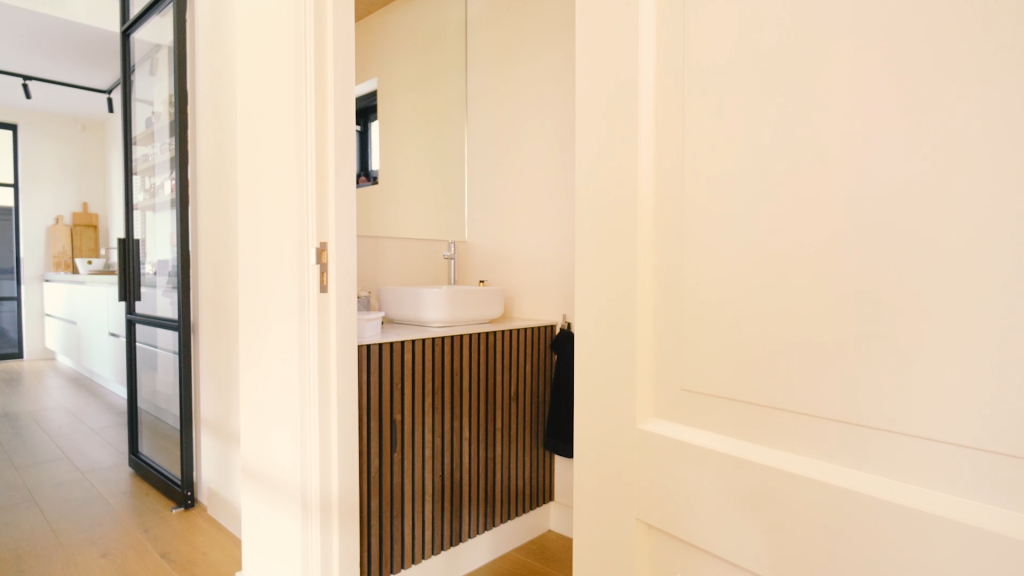 Merged the home’s original features with modern interior design. Annemiek features not just one, but multiple WoodUpp projects: Restroom, bedroom, and hallway.