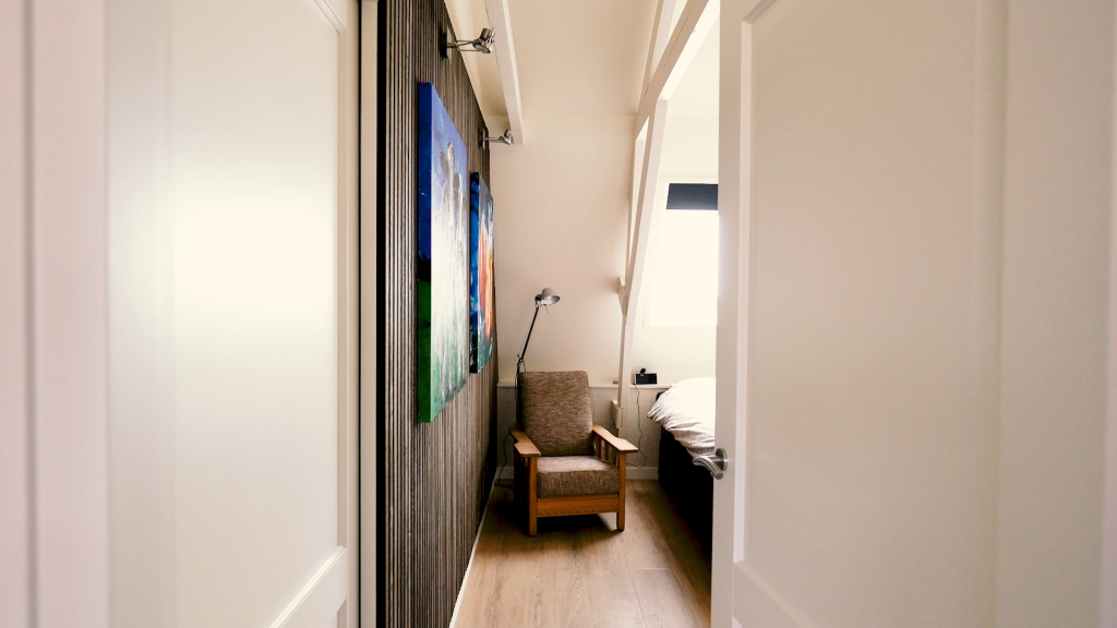 Merged the home’s original features with modern interior design. Annemiek features not just one, but multiple WoodUpp projects: Restroom, bedroom, and hallway.