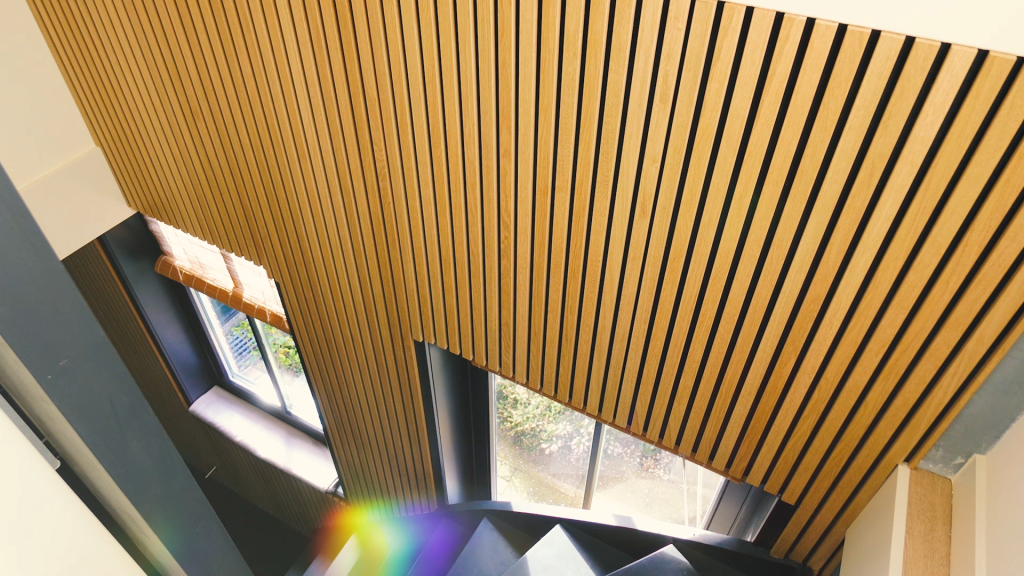 For this project in the stairwell she used the Akupanels in Classic Oak.