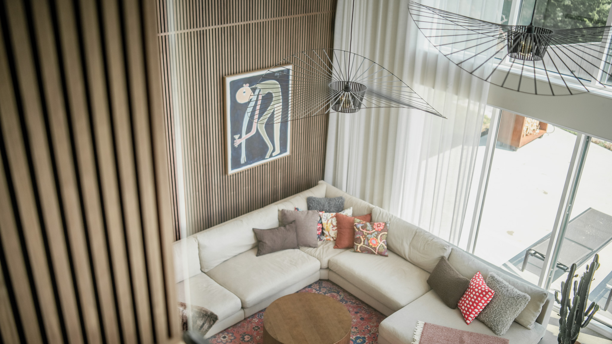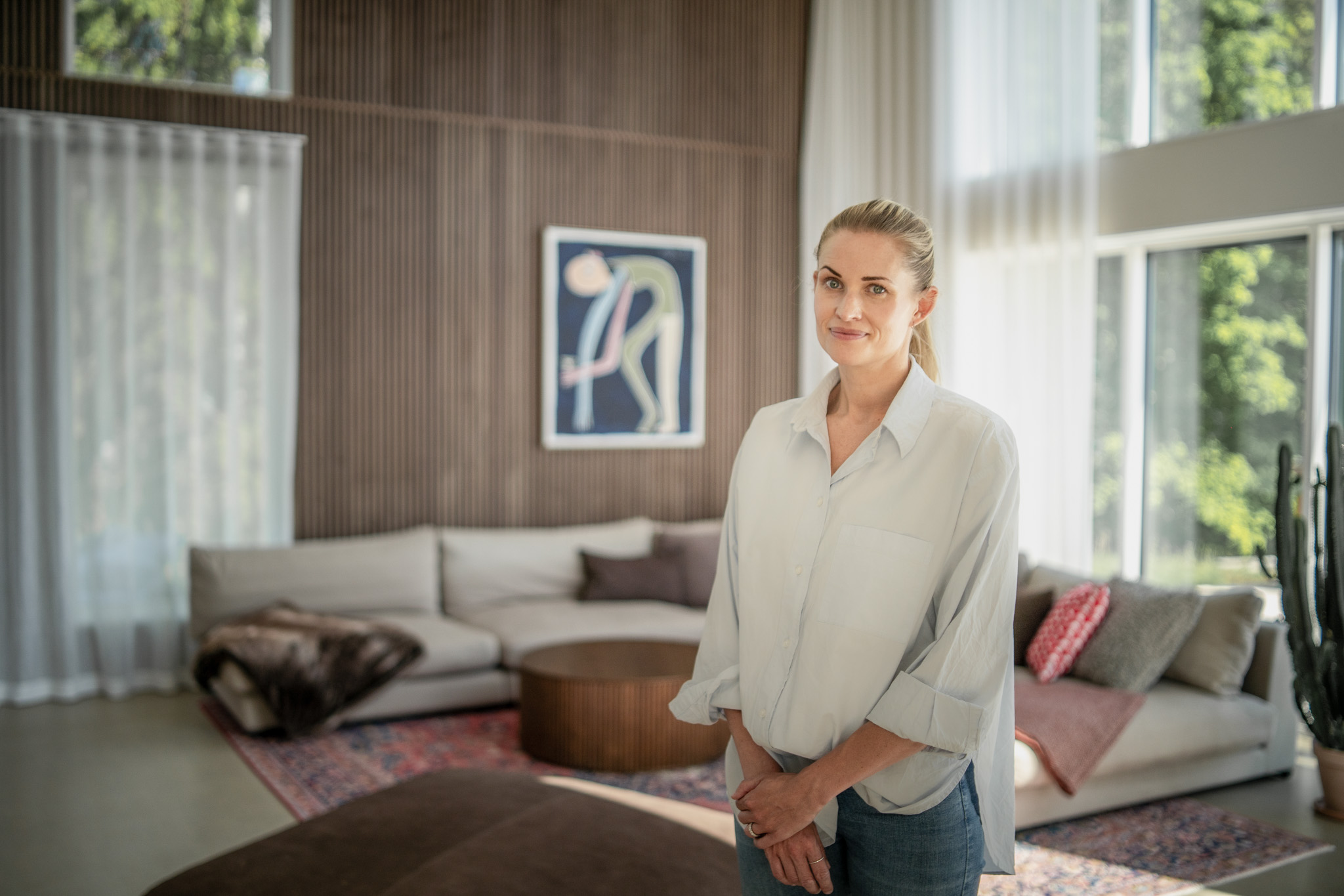 Louise shares how their coastal lifestyle blends tranquility with modern design. Their acoustic panels enhance both sound and style, seamlessly fitting into the elegant interior.