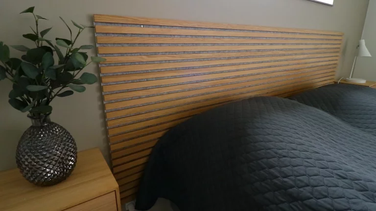 Melissa creatively used the panels in Classic Oak with Grey Felt to craft a beautiful gable, ceiling, and a headboard, achieving a cohesive and inviting ambiance throughout our home.
