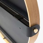 The WoodUpp Mirror is made from Ø60 cm premium glass with a durable plywood frame in natural oak or black veneer. Total width, including the side screws, is 62.8 cm.