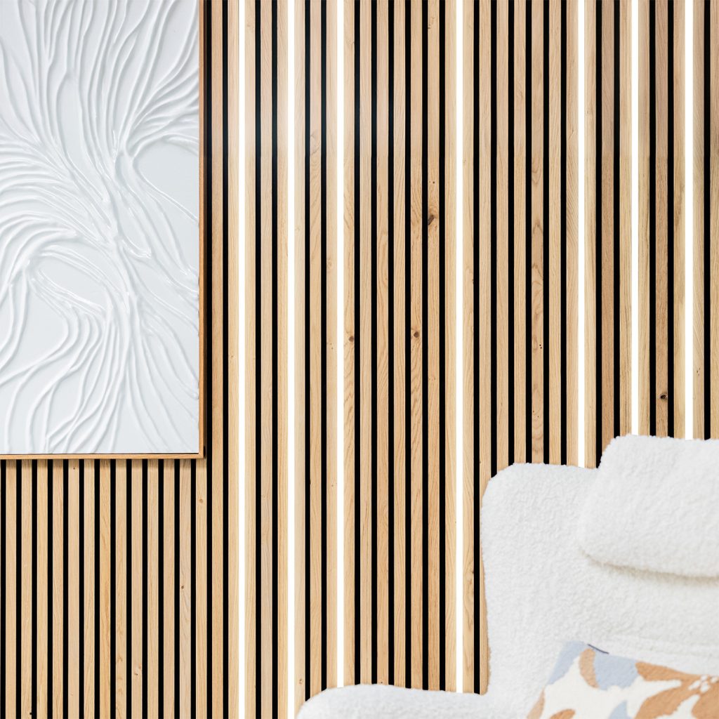 WoodUpp® LED strips are the perfect addition to our acoustic panels, creating a harmonious blend of light and sound absorption. Our acoustic panels are known for their ability to reduce noise and enhance sound quality, making them ideal for various settings, from living rooms to offices. By integrating LED strips, you can now enjoy both visual and acoustic comfort in one elegant package.