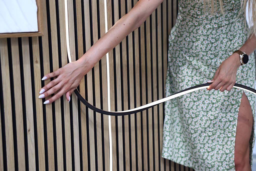 Our new LED strips are crafted exclusively for WoodUpp acoustic panels, ensuring a perfect fit and enhanced functionality. The flexible silicone material with a matte finish allows for effortless installation—simply press the strip into the panel grooves, no tools required. The matte finish matches the color of our black felt, making the LED strips nearly invisible when turned off.